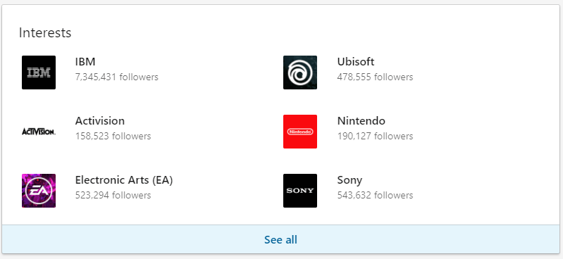 I have followed some major companies like EA games, SEGA that is related to my career i.e game development, designing, artwork and content creation to keep me up to date on new products and releases as well as new technologies related with the subject matter
